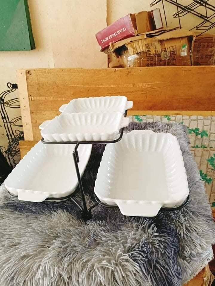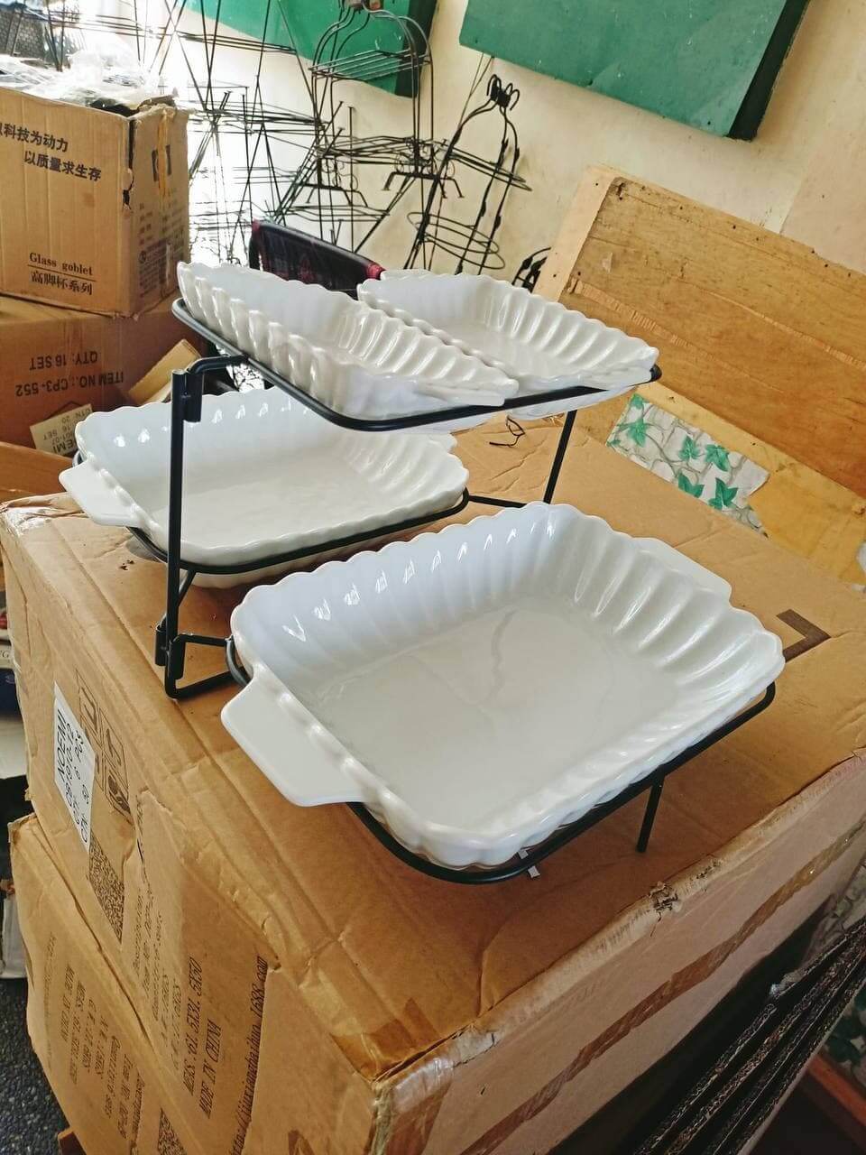 Present delicious appetizers and desserts using this simple yet elegant tiered serving tray.