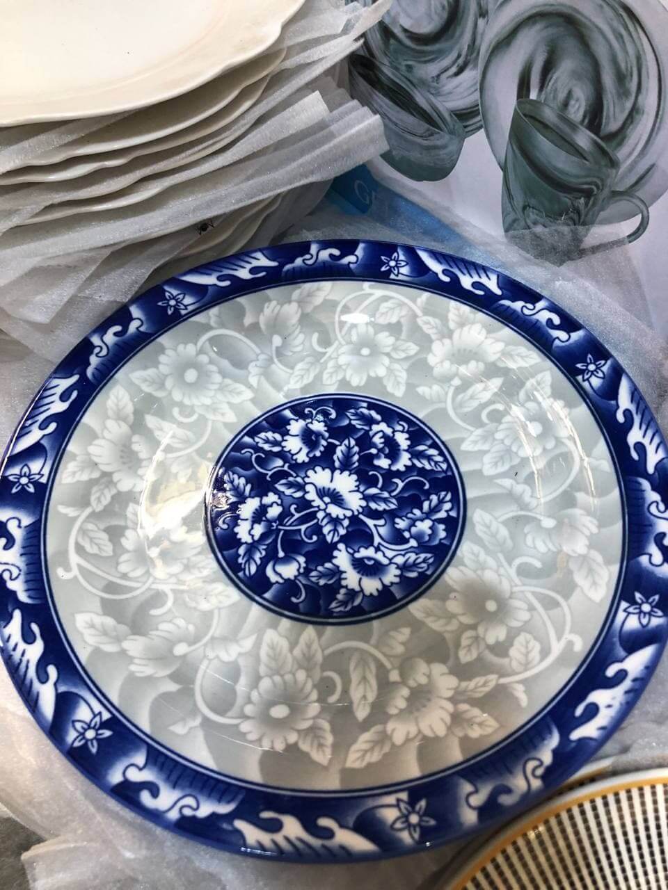 Add some oriental flair to your dining collection with these Japanese style blue and white cracked pattern plates.