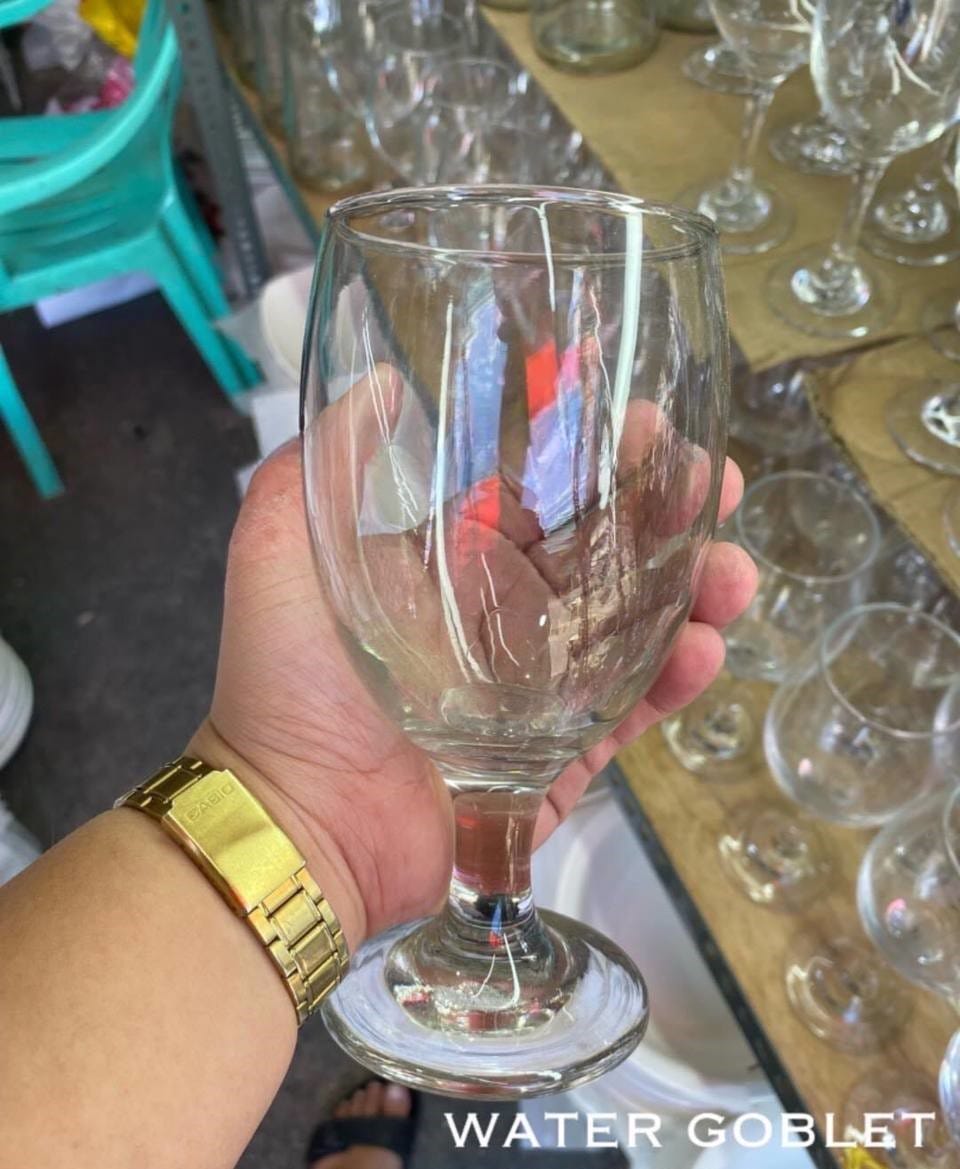 A goblet has a deep bowl and a wide rim, and is often used to serve water in restaurants. It is made of thicker glass in order to maintain the temperature of the drink, and can be used for hot or cold drinks.