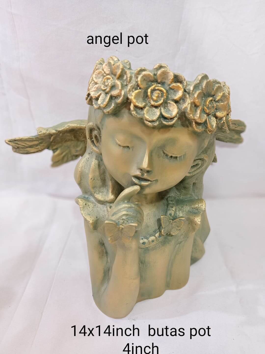 Angel pot to put your favorite plant in. Suitable for indoor and out use.